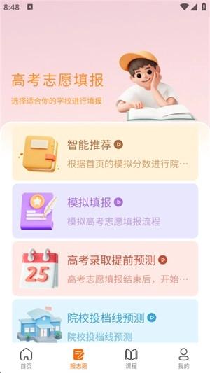 3、依据学生的兴趣、成绩以及其他个人喜好,借助智能算法为每位考生精心打造最契合他们的院校与专业列表。
