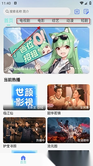 1. 于首页处,点击“电视剧”分类,接着选取“古装”子类型,随后浏览剧集,最后点击剧集封面进行播放。