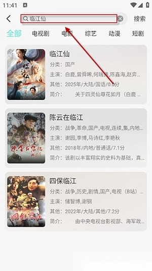 2. 或者点击顶部搜索框,输入影片名称,点击封面播放。