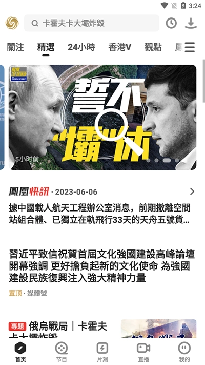 4、直播:通过该app,用户能够实现全天候24小时同步收看凤凰卫视信息台、中文台以及香港台的电视直播。