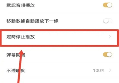 3、在设置中你可以找到定时停止播放,接着点进去。
