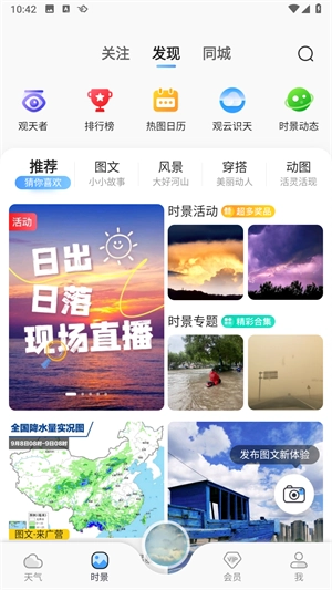 2、能够实时查看温度,还能获取更多实况细节。你甚至可以化身为气象员,将自己目睹的天气状况反馈出来,参与到天气信息的共建与共享当中。
