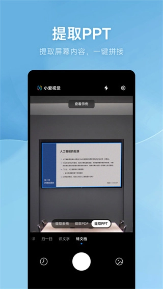 小爱视觉APP,一款简洁又实用的手机智能扫描识别软件,专注为用户带来更专业、高效的文件与图像扫描体验。小爱视觉官方正版软件,拥有功能强大且丰富的AI扫描工具,无论是提取PPT、扫描转PDF,还是拍照翻译、取词翻译等功能,一应俱全,能充分满足用户的扫描需求。有需要的用户,赶快下载小爱视觉APP,让它成为你最得力的办公助手。