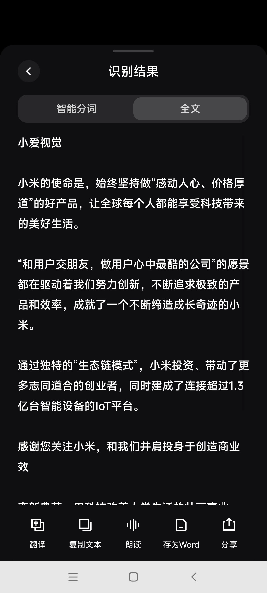 小爱视觉App融合了扫描识别、扫码识物等多种功能,操作轻松简便,只需简单一扫,就能轻松获取你想了解的信息。不仅如此,扫描文件时它还能智能识别文字信息,并支持导出为Word文档,显著提升了工作效率。