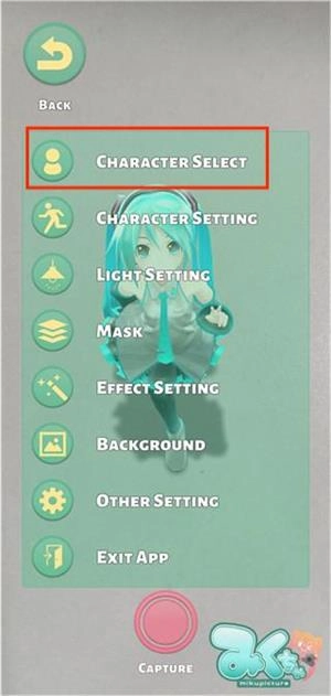 1、打开mikuture,进入主界面,点击左上角的选择按钮。