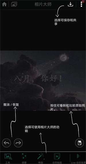 相片大师APP具备多种格式的导入与导出功能,RAW文件也涵盖其中。它能实现高质量的影像输出,并且支持实时预览,使得用户在编辑时可即刻目睹修改后的效果。
