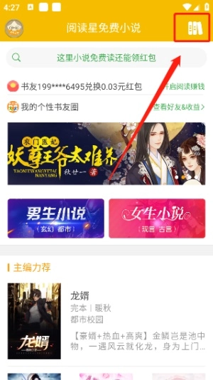 1、点击右上方进入书架。