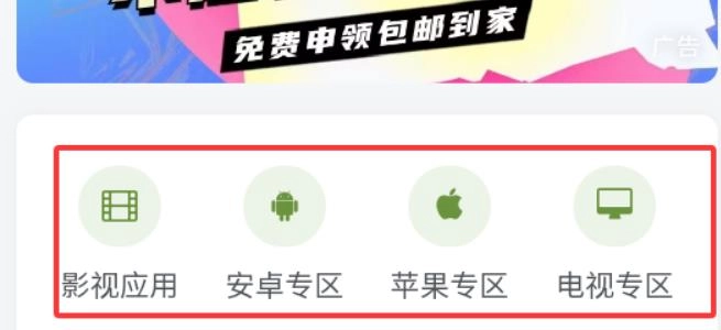 2、于首页处,能够看到影视应用、安卓专区、苹果专区、电视专区等板块内容。