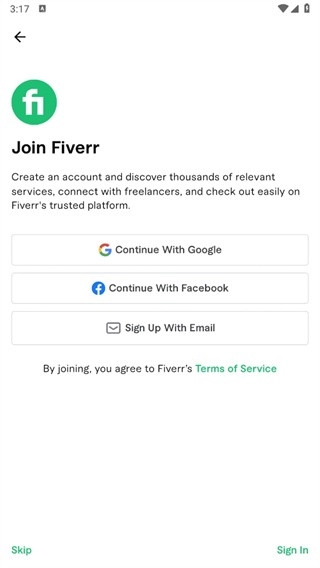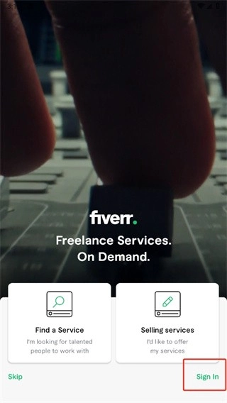 1、第一步,打开fiverr App,打开后点击右下角的【Sign In】。
