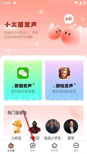 1、打开小火苗变声器进入首页,点击下方变声。