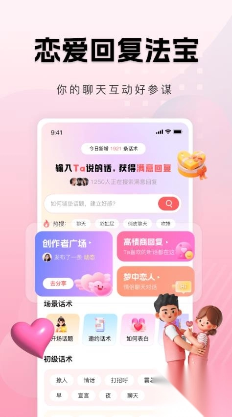 点点即甜app官方版,一款聚焦提升用户聊天技巧的高情商话术聊天交友软件。它就像聊天救星,专为解决与女生聊天时的尴尬及无话可说困境而打造,助力用户在与异性交流时更自信从容,让对话流畅自然,恋爱之路畅通无阻。