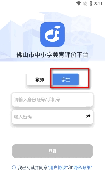2、学生端输入身份证号、手机号及密码就可以登录。
