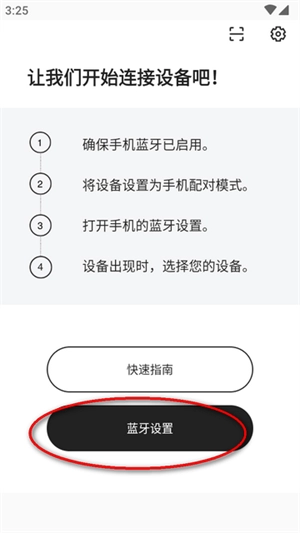 2. 打开软件并进入,点击蓝牙设置选项,把设备调整为配对模式。