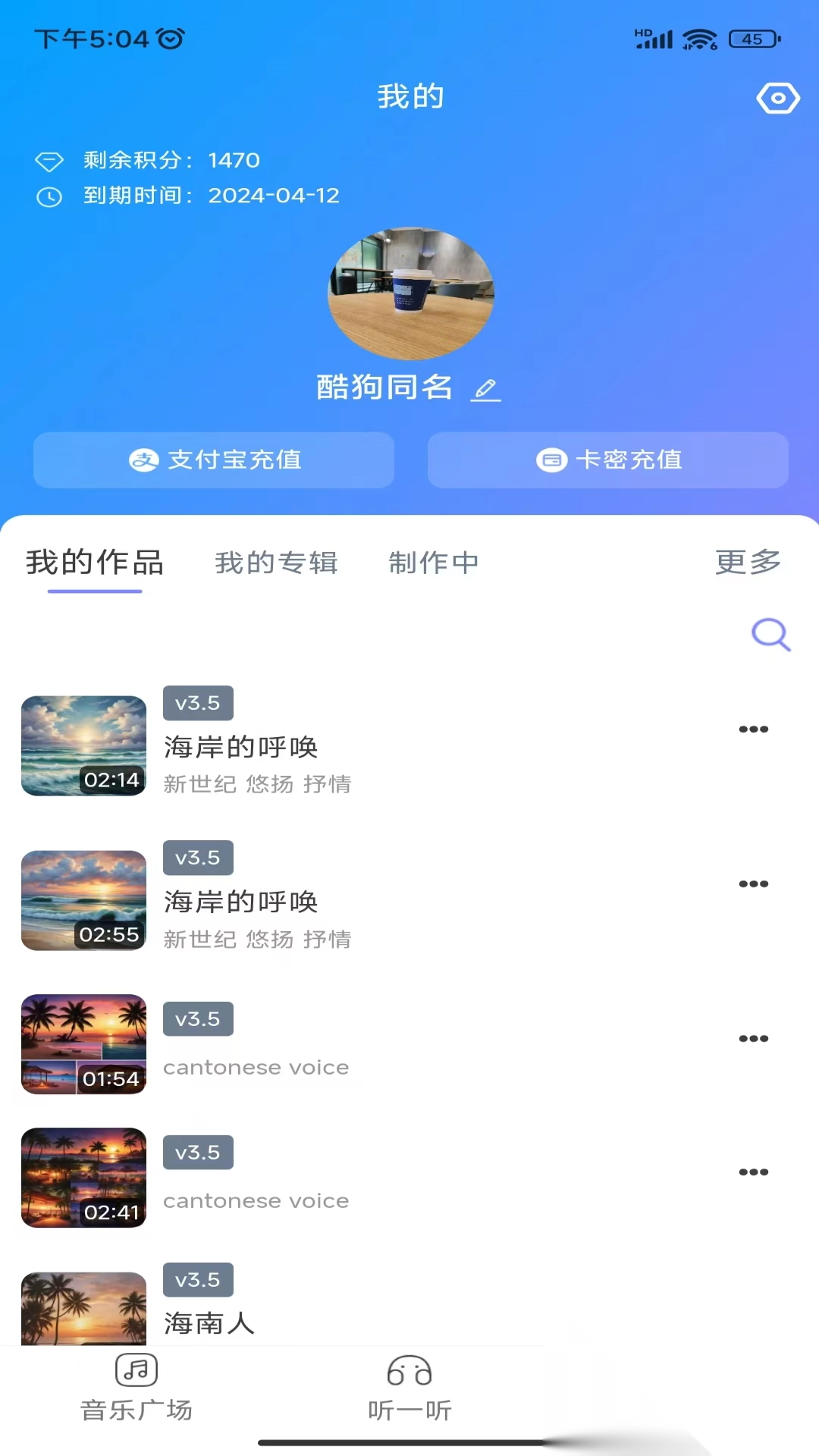 1.下载安装酷你AI音乐app,之后打开,进入主页;