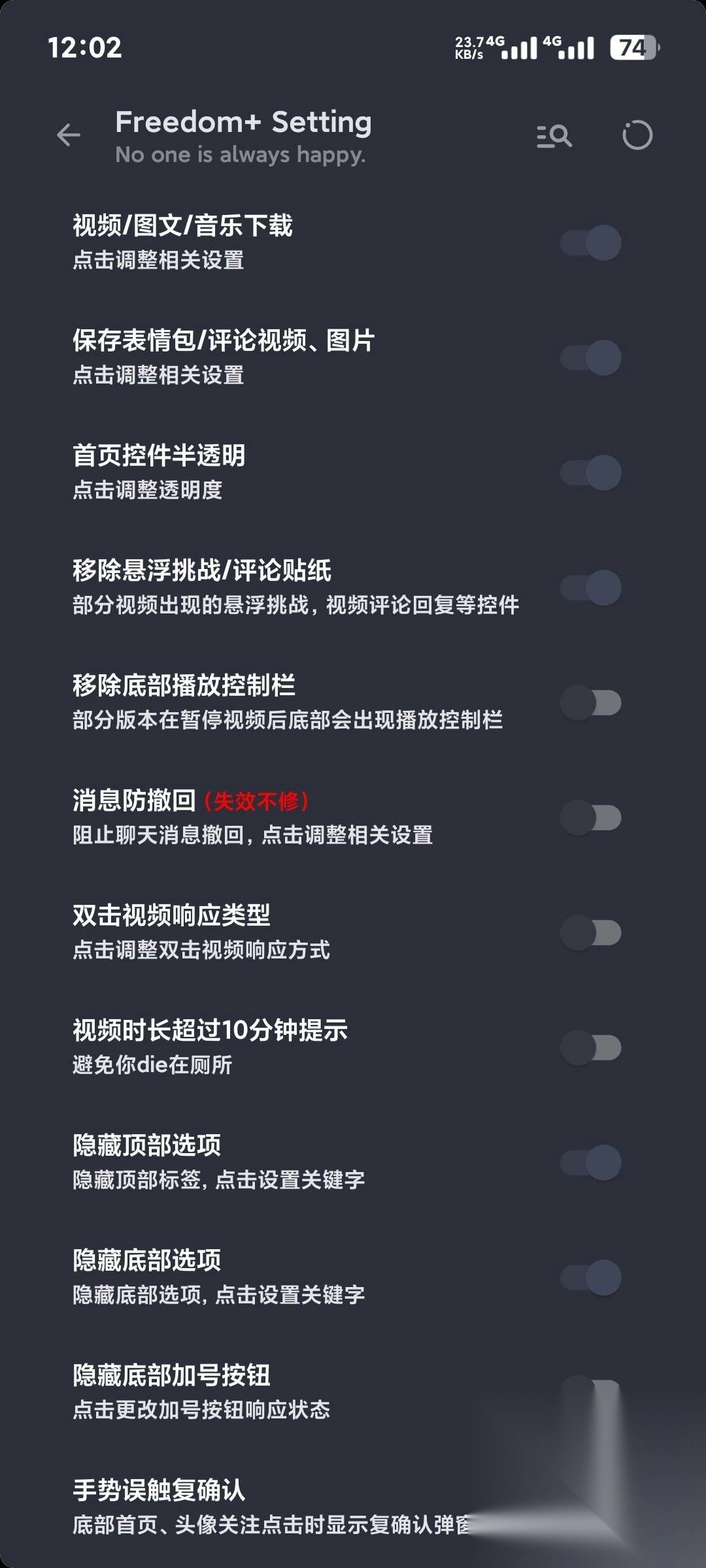 抖音小能手模块是一款融合了抖音小能手与freedom模块的抖音APP。这款软件借助Freedom+,实现了去广告、去除视频水印等功能,使用户能够自由下载无水印的各类视频和音频。不仅如此,它还支持隐藏主页标签以及调整界面透明度,丰富多样的内容可供玩家尽情自由体验。感兴趣的小伙伴千万别错过!
