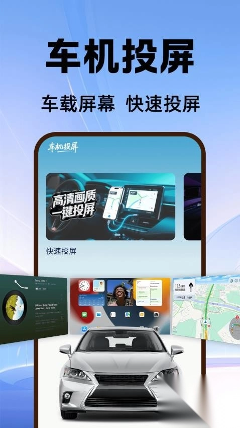 3. 具备一键无线投屏功能,可把手机画面以高清状态同步到车载屏幕上,实用性极强。
