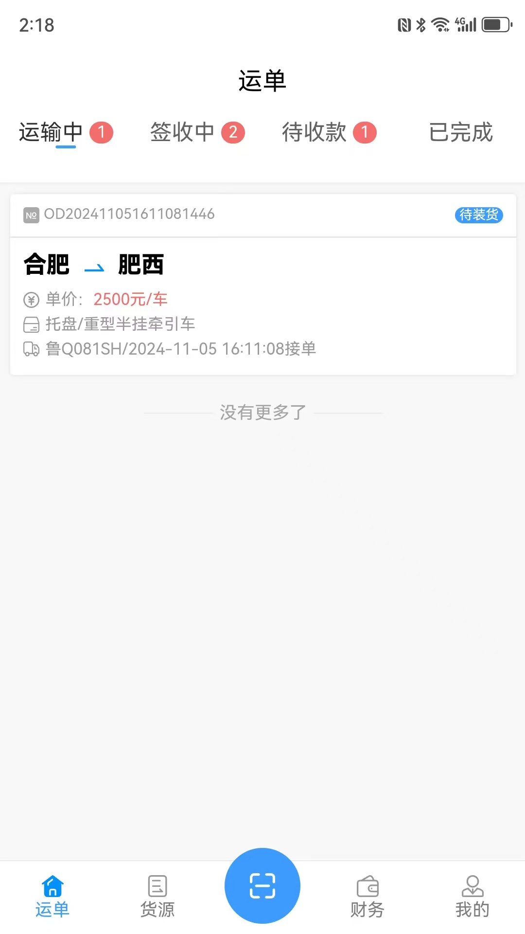 2、对已接单的运单进行管理,实时查看运单状态,了解装货地、卸货地等信息。