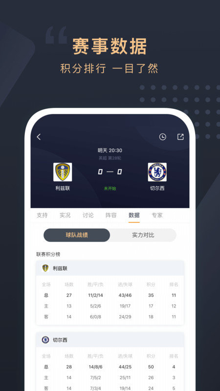 1、欧冠,中超,英超,西甲,德甲,意甲,法甲等联赛比赛战况一手掌握,刷文字,看数据,抢沙发。