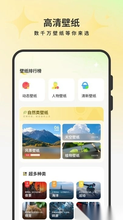 桌面壁纸精美是一款独具特色的桌面壁纸软件,它精心汇聚海量风格各异的静态与动态壁纸。在这里,用户可以轻松找到涵盖人物、宠物、风景、汽车、运动以及小清新等多种风格的壁纸类型。每一张壁纸不仅配备了极致高清的画质,还有流畅自然的动画效果,更有悦耳动听的音效相伴,致力于为每一位用户量身打造最具个性化的专属桌面皮肤。