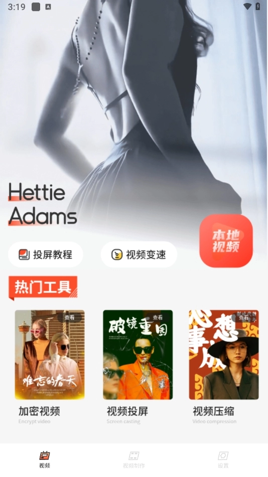 1、进入软件后,能看到当下一些热门功能。比如,软件支持投屏,可将手机本地播放的内容投至电视;还能压缩视频,使其占用空间变小;此外,也能对视频进行加密处理。