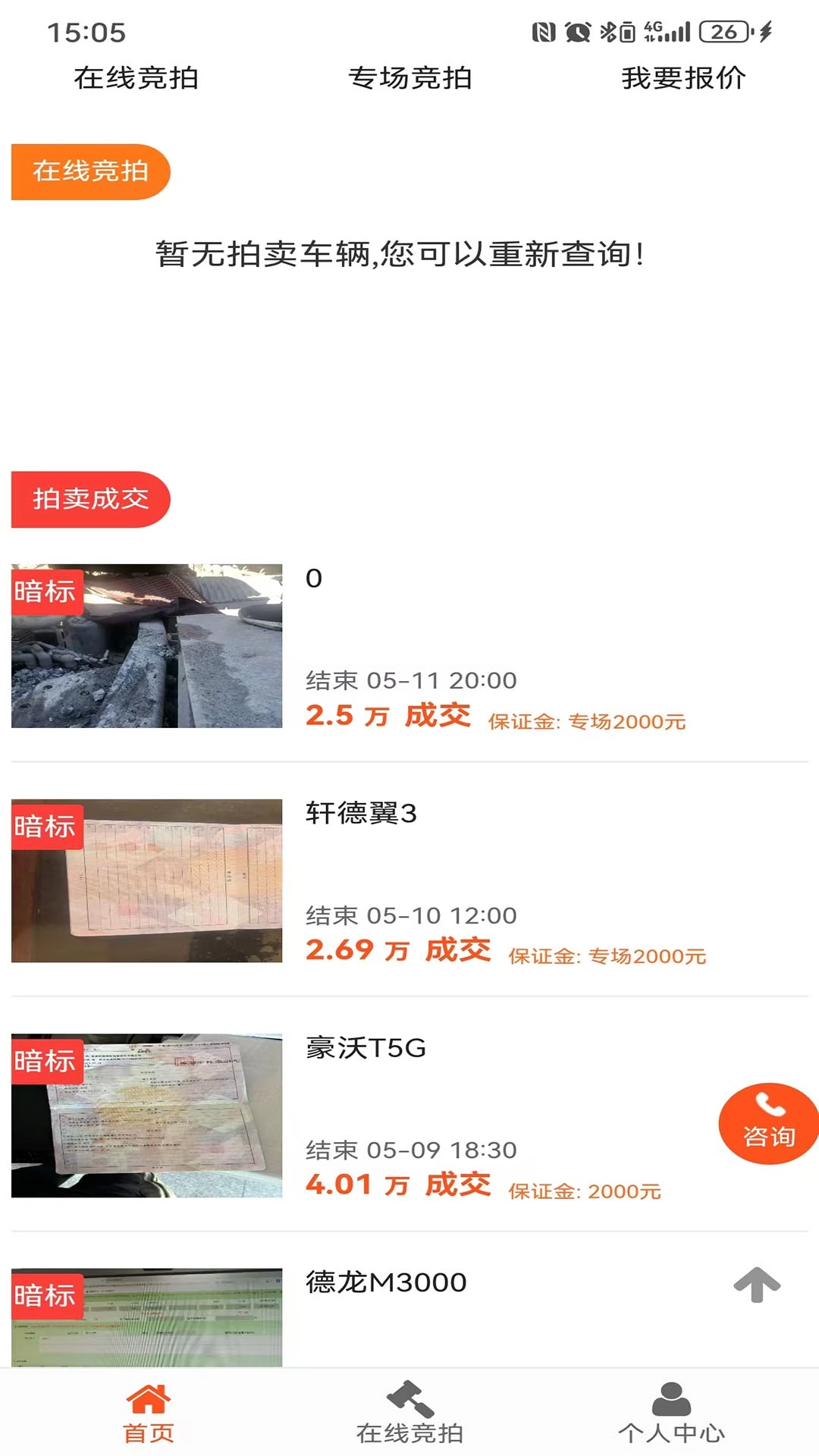 3、可对历史拍卖成交车辆信息进行查询,助力您了解市场行情,为竞拍决策提供有力辅助。
