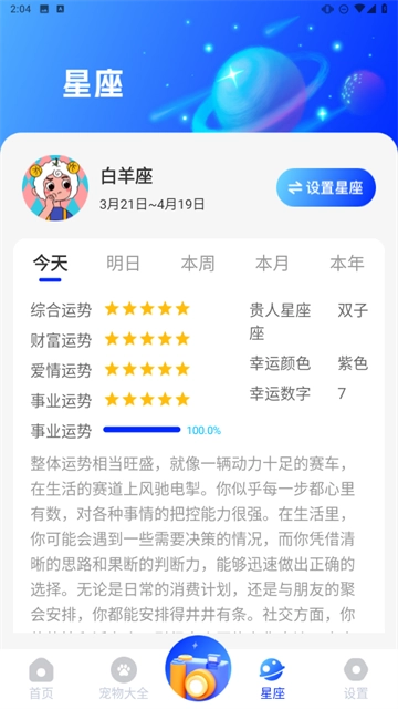 3、进入【星座】模块,参与【星座测试】,查看每日运势,解锁星座解析。