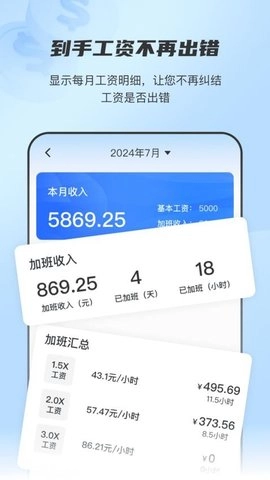放心记工时APP是一款助力用户记录工时的智能化软件。在记录工时的过程中,用户能够自主选择并录入加班等相关信息,操作十分简便。这款应用可协助用户高效且精准地记录工时,为后续管理提供便利。此外,用户还能进行工资设定,输入基本工资、加班工资等数据,应用便会自动算出相应的收入。