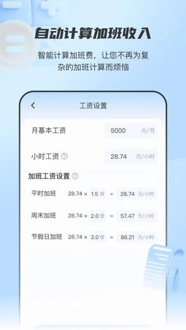 2、放心记工时APP还提供了智能工资计算功能。