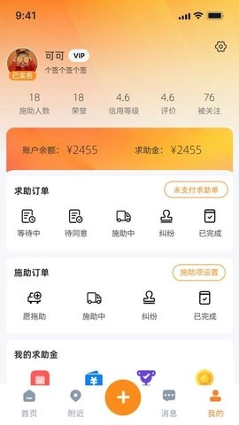 1、在订单管理上,嗯来吧App对求助订单与施助订单做了明确分类,使用户能够迅速查看各类订单的相关信息。