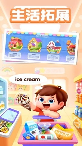 1、这款应用精心打造了“奇妙超市”“萌宠乐园”“快乐农场”等生活应用场景,为宝宝构建沉浸式的外语启蒙语境,助力宝宝积累单词与短语,并促使宝宝将所学知识运用到日常生活当中。