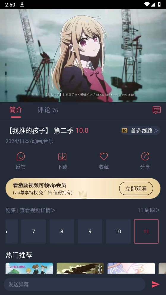 2、支持离线下载,全站动漫番剧统统免费可供免费观看,下载喜欢的动漫。