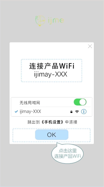 打开设备,点击“ok”,跳转至WiFi界面,连接设备WiFi。