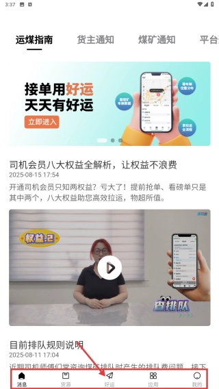 1. 开启运煤类应用程序,轻点底部的好运选项,从而进入好运功能页面。