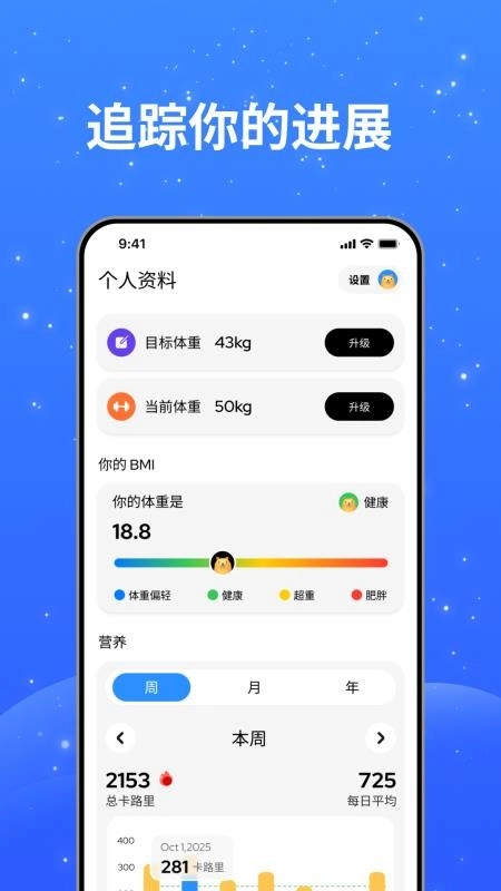 3、轻松追踪:助力用户轻松跟踪相关运动进展,随时知晓自身运动所消耗的卡路里,实现实时跟踪查看。