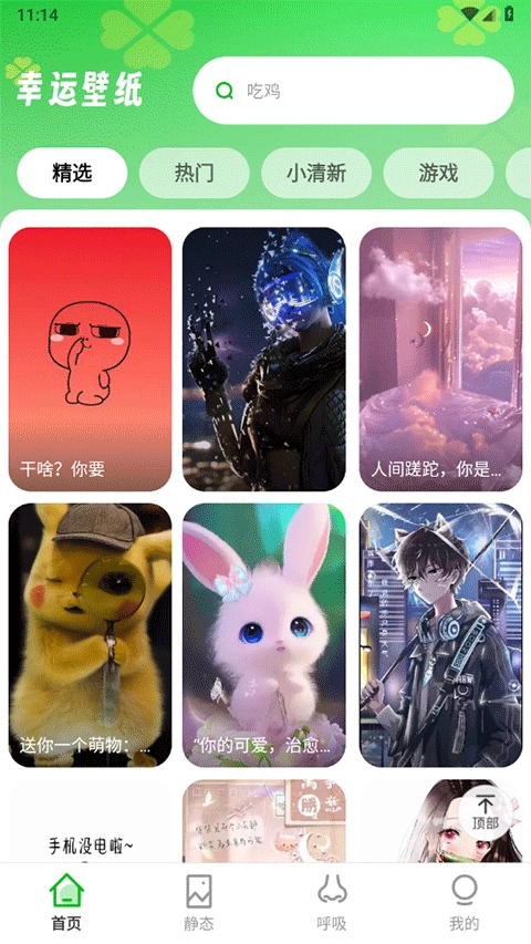 幸运壁纸是一款提供海量桌面壁纸的手机应用,软件汇聚全网海量壁纸资源,无水印、4K超清,分动态、静态且详细分类,含萌宠、风景等元素,方便用户找心仪壁纸。新增呼吸功能,可助眠、平复情绪等,练习后生成报告助用户了解变化,软件实用,有需可尝试。