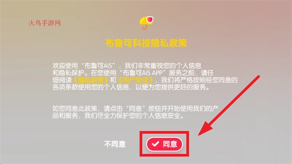 先安装布鲁可AiS,安装完成后打开该应用。当出现布鲁可科技隐私政策提示界面时,点击“同意”选项。