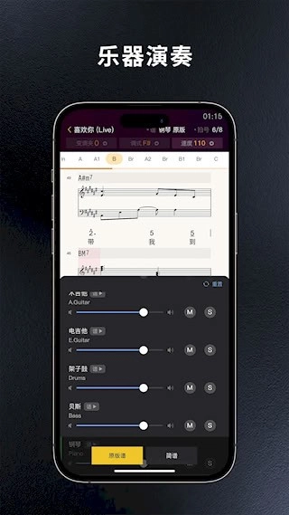 2. 丰富乐器支持:涵盖吉他、鼓、键盘、钢琴等多种乐器,不仅能展示线性乐谱,还具备变调夹功能,无论是学习还是演奏都极为适用。