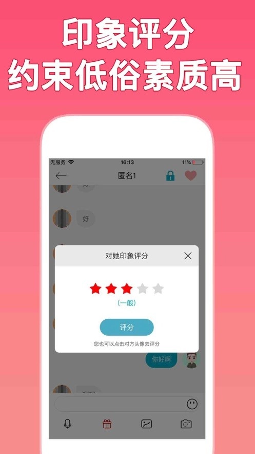 【印象评分】在“锦里”平台,你能够对和你聊天的用户进行“印象评分”,同时也能查看对方的“印象得分”,以此拒绝低素质者与你交流。“印象评分”促使聊天双方相互约束,让交友聊天环境变得更加纯净。