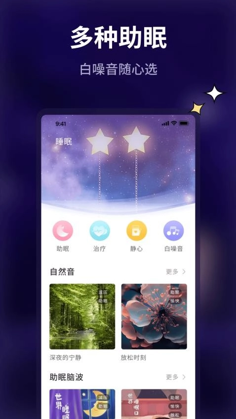 4. 搭配Pillow好眠的其他功能,像放松音乐、冥想之类,助力您更轻松地入眠,并提升睡眠品质。