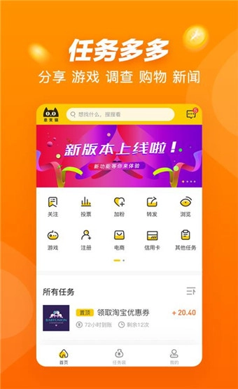 1、这款软件主打做任务赚钱,每天都会免费发布海量任务,提供极速悬赏赚钱模式,让用户能够体验到你发布的悬赏任务。