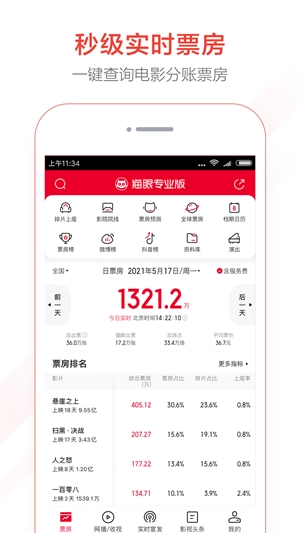 国内首屈一指的实时票房查询利器,让你迅速、精准、高效洞悉电影市场实时态势。