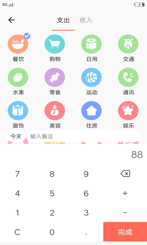 2. 进入主界面后,点击“收支记录”按钮,就能记录当天的收支状况。