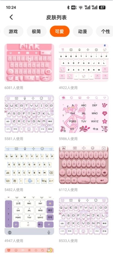 4、即刻拥有超多键盘皮肤,轻松打造个性键盘,为输入增添更多乐趣。