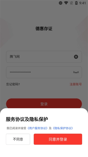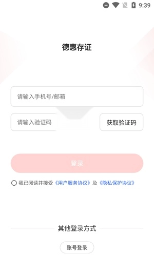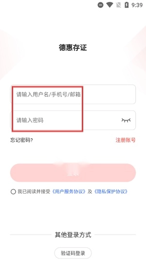 请开启您的德惠存证App,于登录页面录入您的账号及密码,随后点击登录按钮。