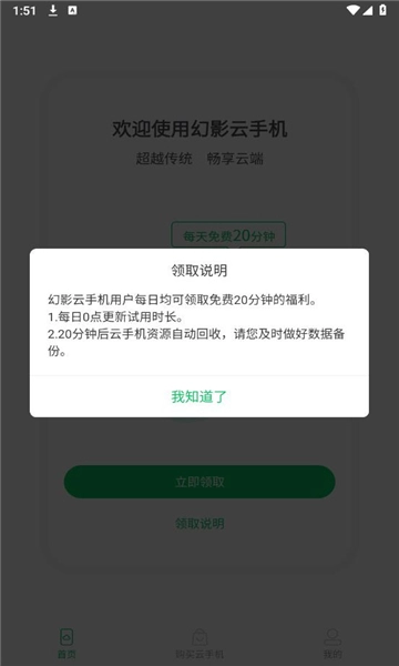 幻影云手机,是一款极为简单易用的云手机服务软件。要是你手机内存不足,无法安装各类大型游戏,又或者想尝试某些应用,这款软件都能满足你,让你畅享云游戏的便捷服务。每天还能领取免费的20分钟时长,无论是玩游戏签到、做任务,还是查阅资料,使用起来都极为方便。它运行流畅,能让每位用户获得与众不同的体验。
