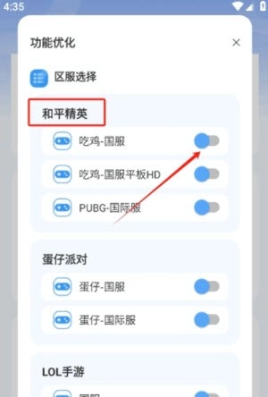 4、接下来选择游戏以及区服,比如开启和平精英的相应版本,以此匹配最佳画质。