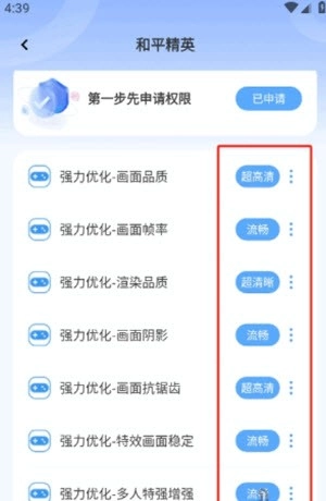 6、点击【确认申请】,按照需求对画质参数进行调整,像分辨率、抗锯齿之类,以保障获得最优体验。
