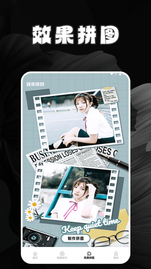 3、一站式效果拼图功能,堪称拍摄必备神器,便捷无比。