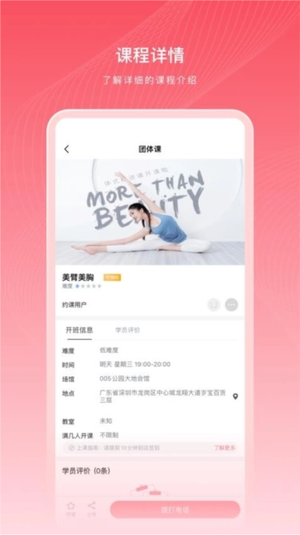 在此处能够查看场馆的课程信息,如此用户便能够知晓各个课程的具体时间。