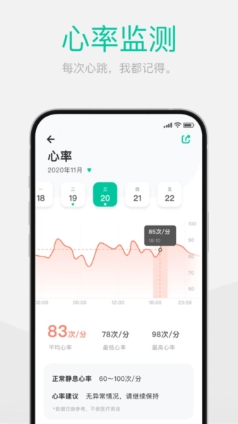 6、既给出了正常心率范围,又依据用户具体状况给出了心率方面的建议。